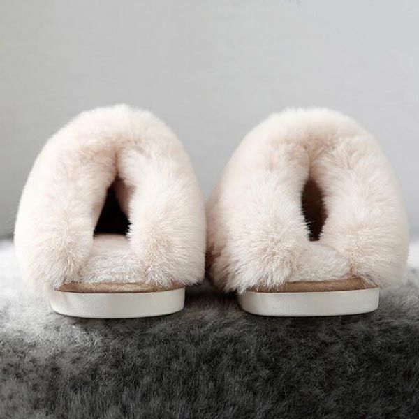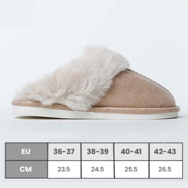 Dopřejte si pohodlí a překonejte zimu ve velkém stylu! Tyto pantofle mají měkký prodyšný veganský semiš s prošívanou linií uprostřed nártu a huňatý límec z umělé kožešiny, který obepíná nohy od kotníku až k patě a zajišťuje nohám teplo.