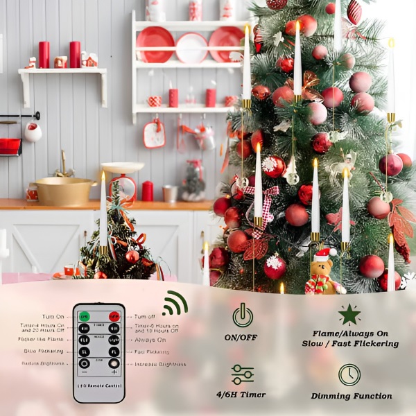 Pomocí dálkového ovladače s 10 tlačítky můžete regulovat jas svíček, vybírat ze čtyř světelných režimů a nastavit časovač na 4 nebo 6 hodin – pro snadné a flexibilní zdobení.