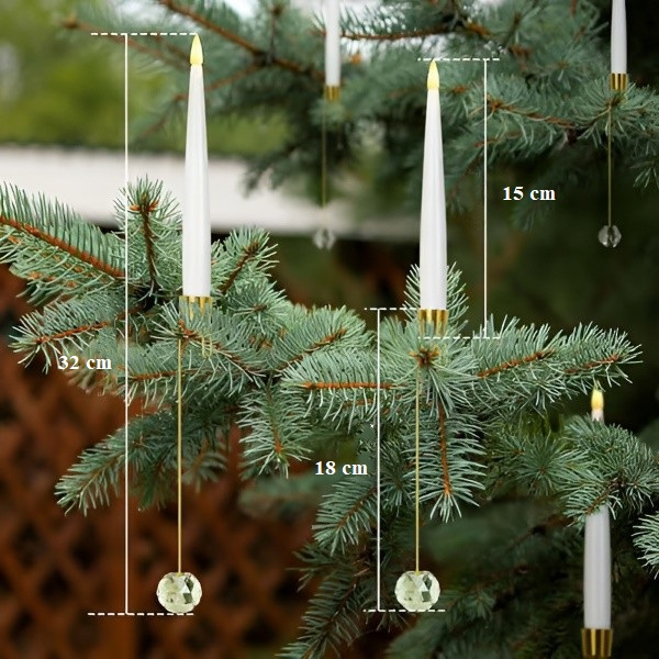 Bezplamenné svíčky ve tvaru svíce jsou vyrobeny z plastu s matným a leštěným povrchem, který napodobuje skutečný vosk, a vyzařují teplé, blikající světlo skrze křišťálovou kouli.