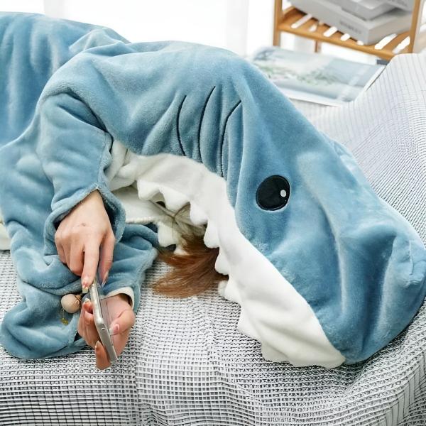 🦈 Ponořte se do pohodlí s dekou se žralokem – částečně deka, částečně spací pytel, částečně žralok!