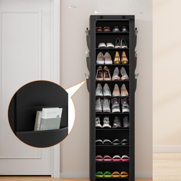 Vybaven prachuvzdorným látkovým krytem a zipem. Tento botník zajišťuje, že vaše boty zůstanou čisté, chráněné před prachem a nečistotami.