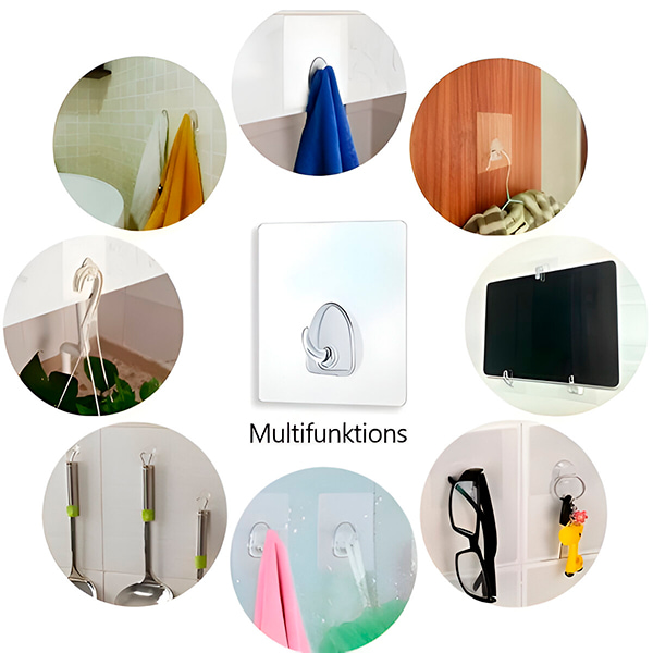 Křišťálově čistý háček a základna ladí s jakýmkoliv dekorem. Použijte ho, aniž byste narušili estetiku vaší stěny. Styl zůstává nedotčen.