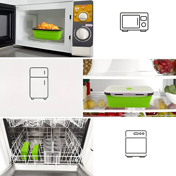 Tyto nádoby jsou vyrobeny z vysoce kvalitního silikonu bez obsahu BPA a zajišťují, že vaše potraviny zůstanou čerstvé a bez škodlivých chemikálií.
