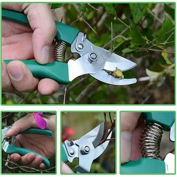 Vypořádejte se s přerostlými větvemi jako profesionál! Součástí sady jsou také kvalitní zahradnické nůžky, které zvládnou stříhat větve silné až 12 mm. Zakřivená konstrukce čepelí zajišťuje přesné a účinné stříhání.